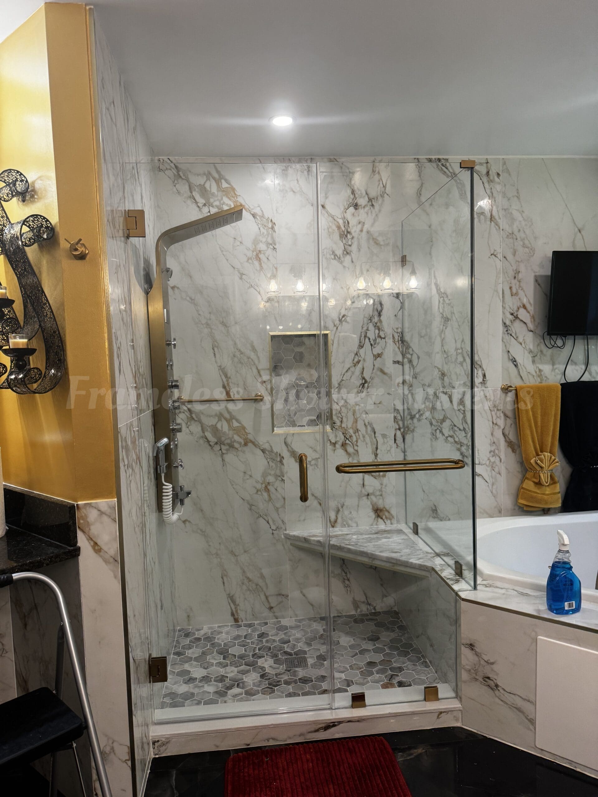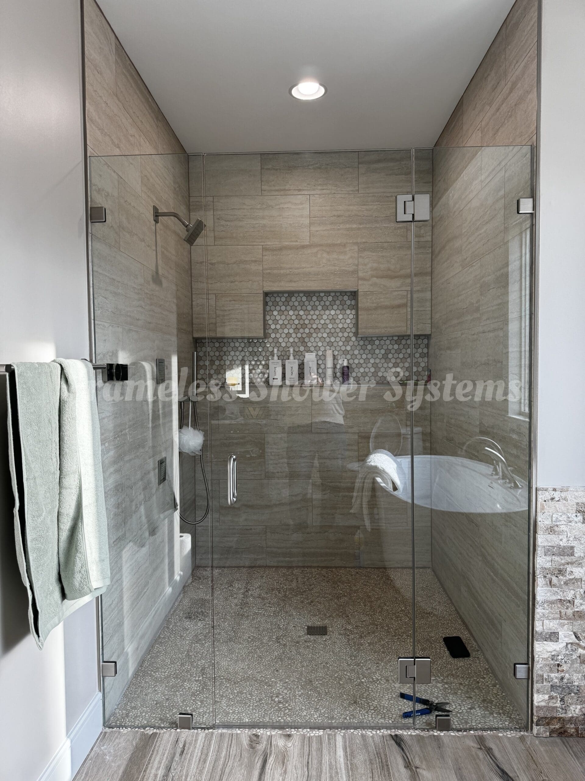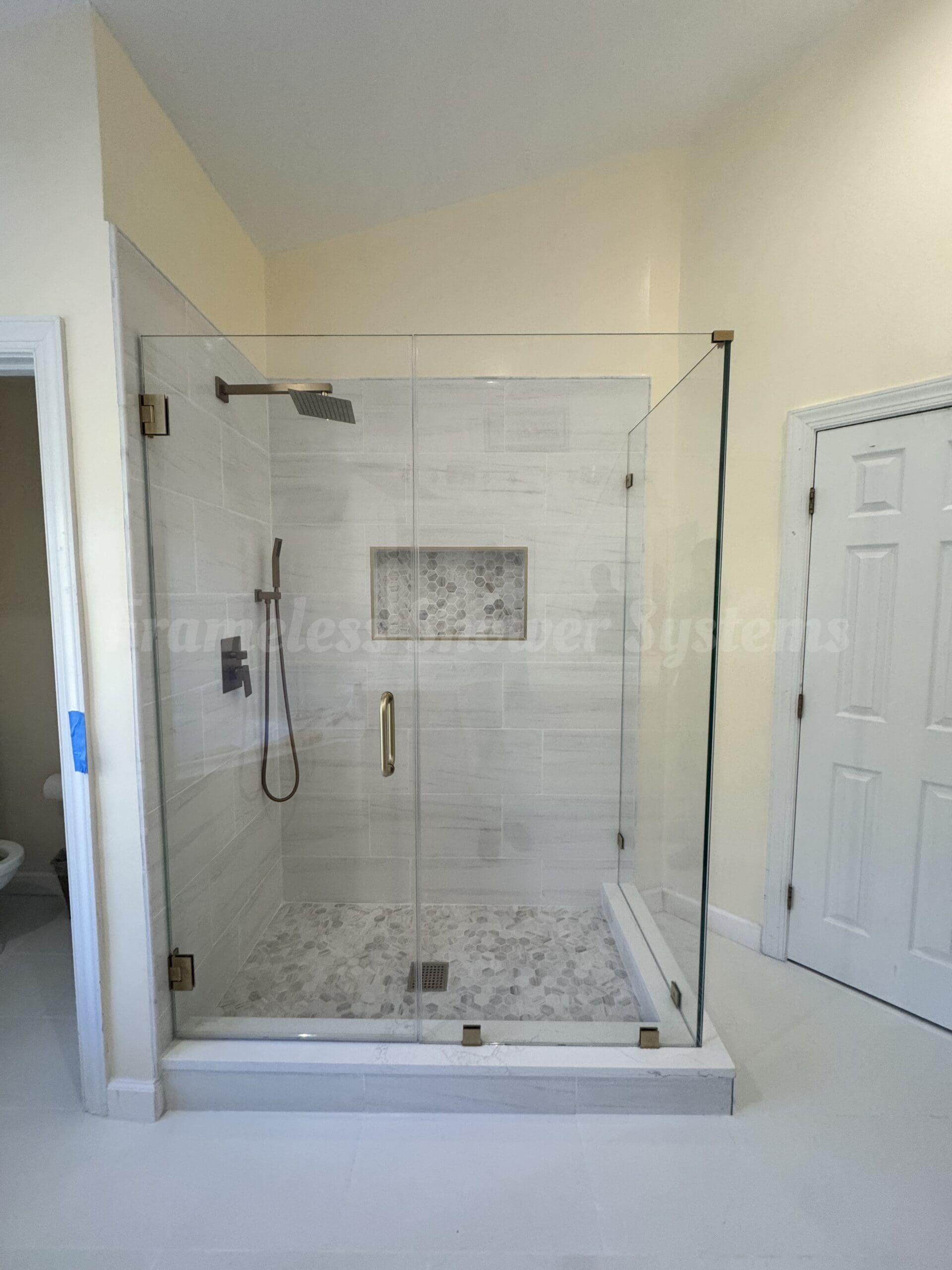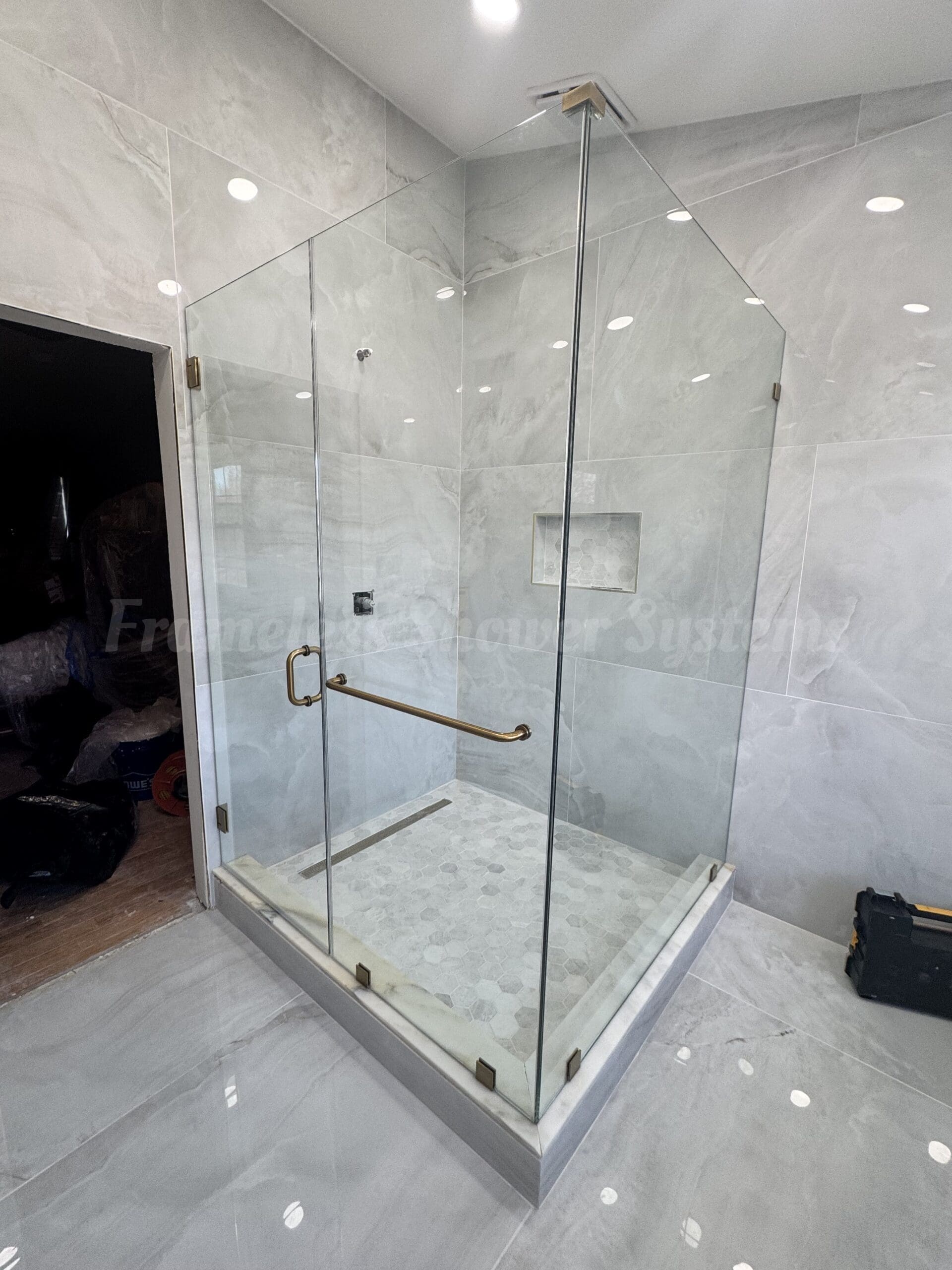 We invite you to explore our extensive photo gallery showcasing a variety of frameless shower images. Each photograph is a testament to our skilled artisanship, illustrating the clarity and beauty of frameless glass designs. The minimalist aesthetic allows for seamless integration into any bathroom style, whether traditional or contemporary.