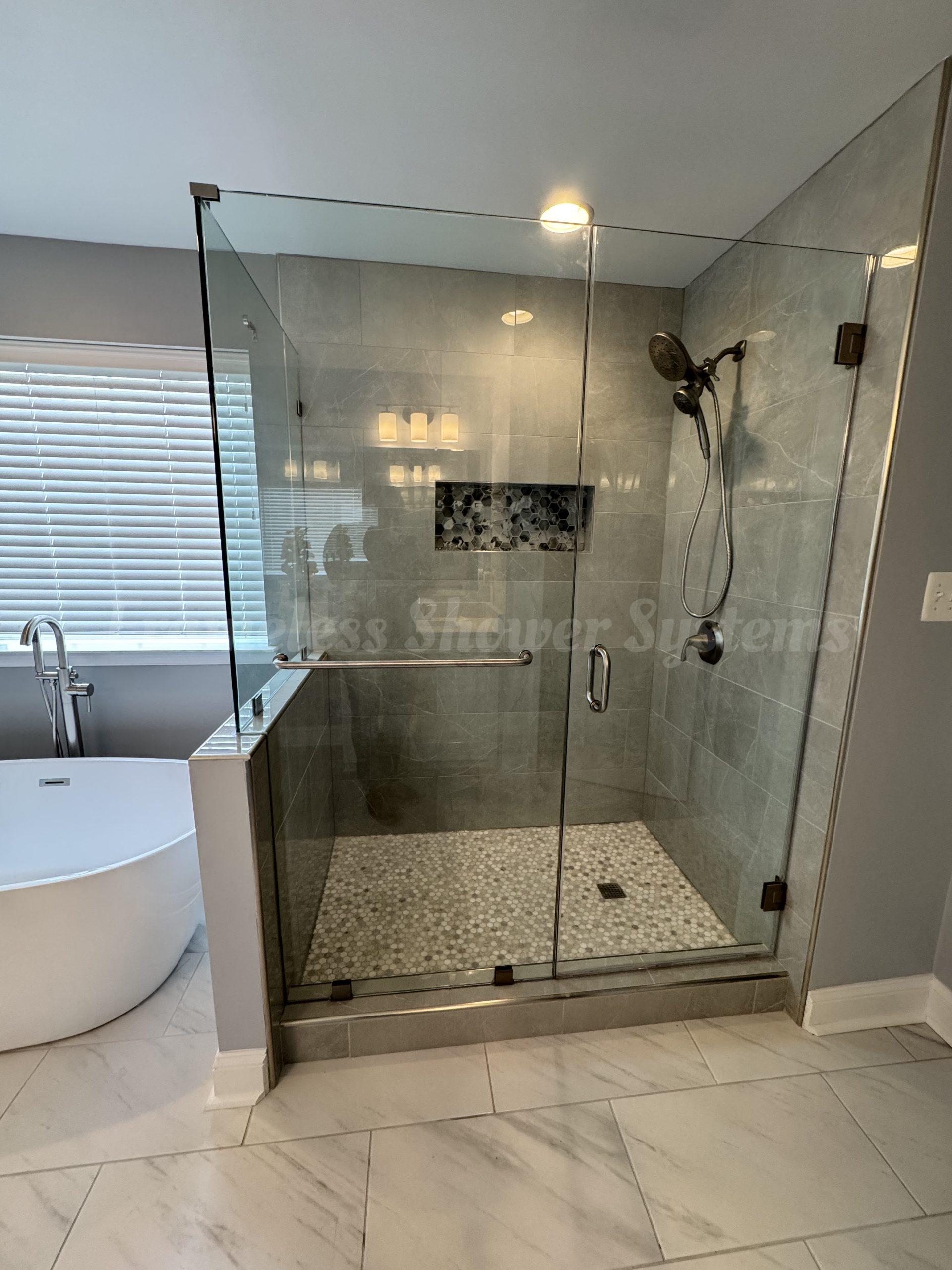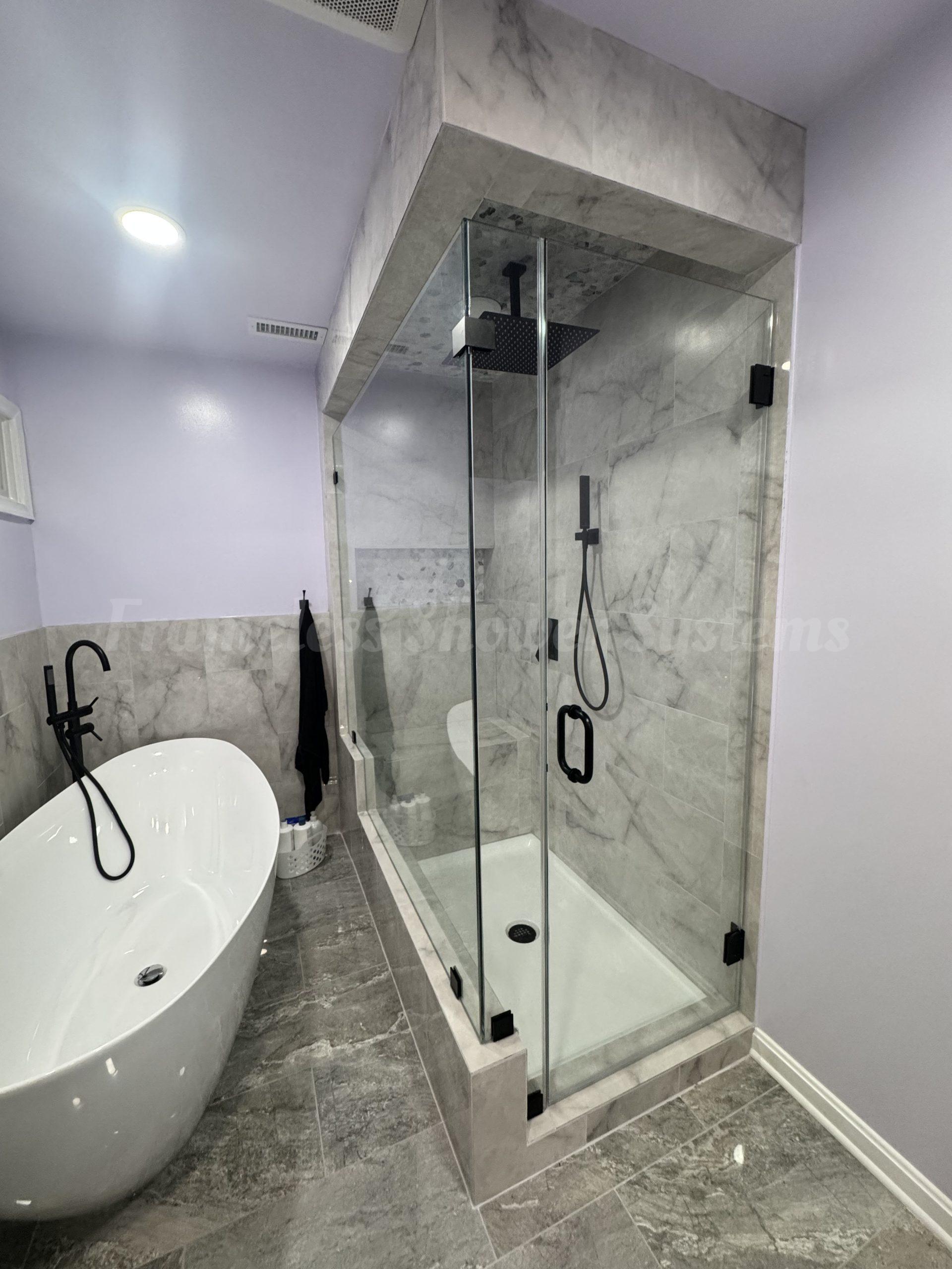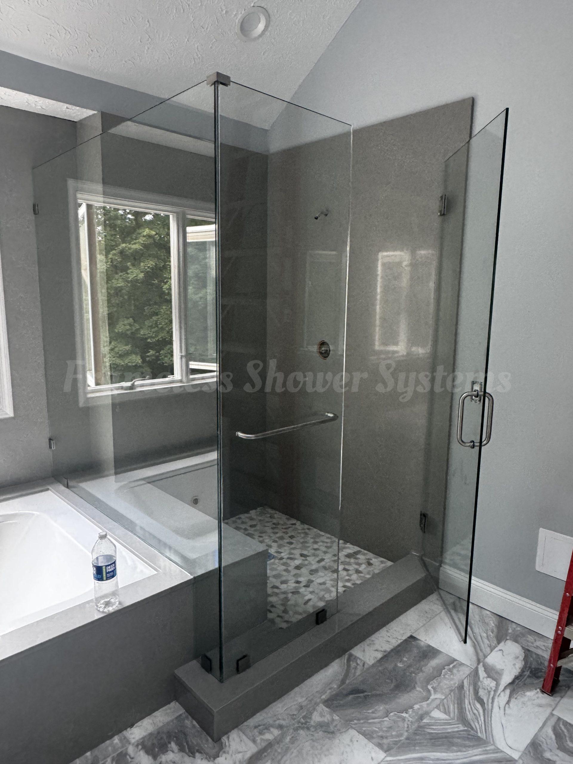 We invite you to explore our extensive photo gallery showcasing a variety of frameless shower images. Each photograph is a testament to our skilled artisanship, illustrating the clarity and beauty of frameless glass designs. The minimalist aesthetic allows for seamless integration into any bathroom style, whether traditional or contemporary.