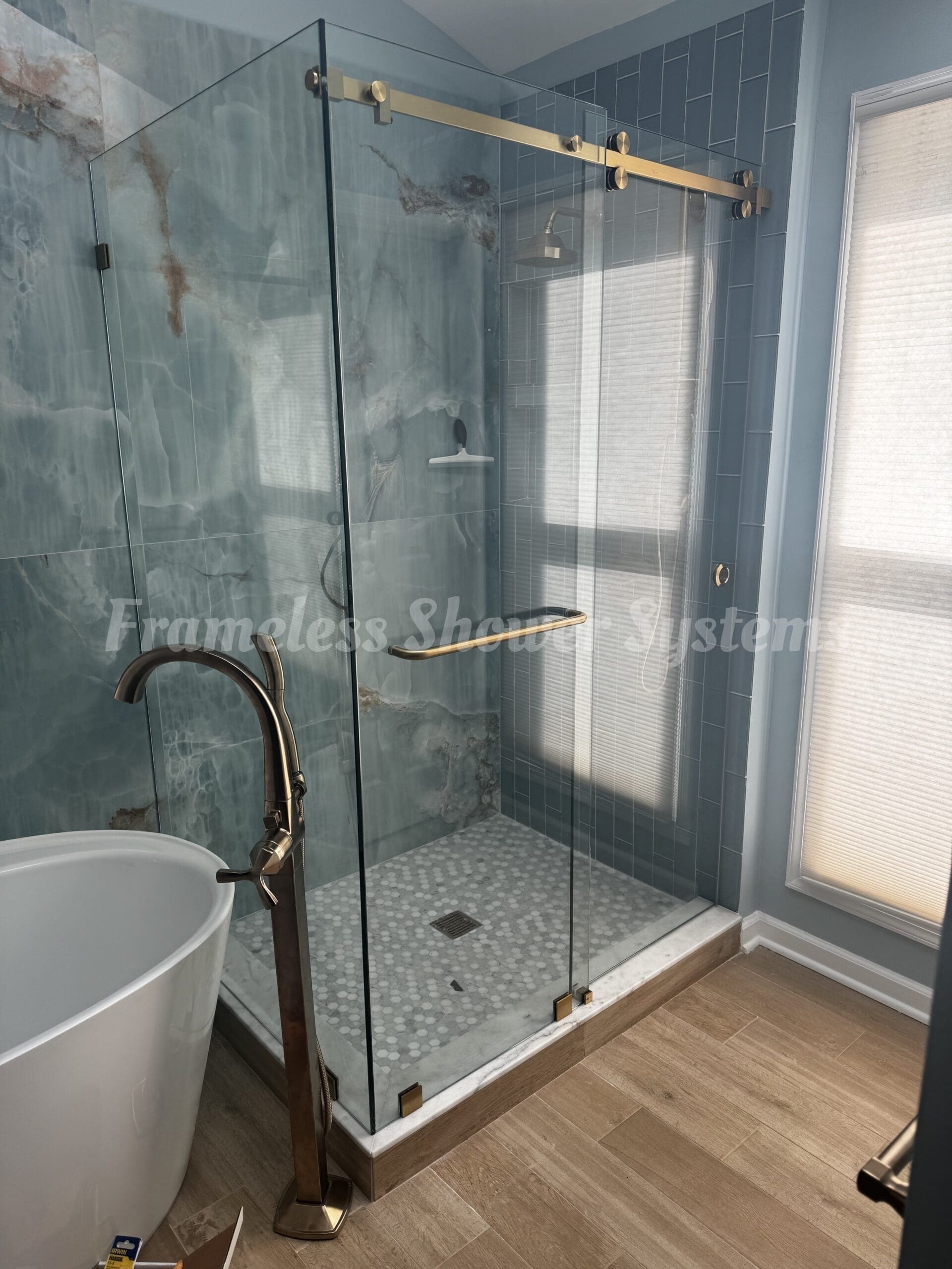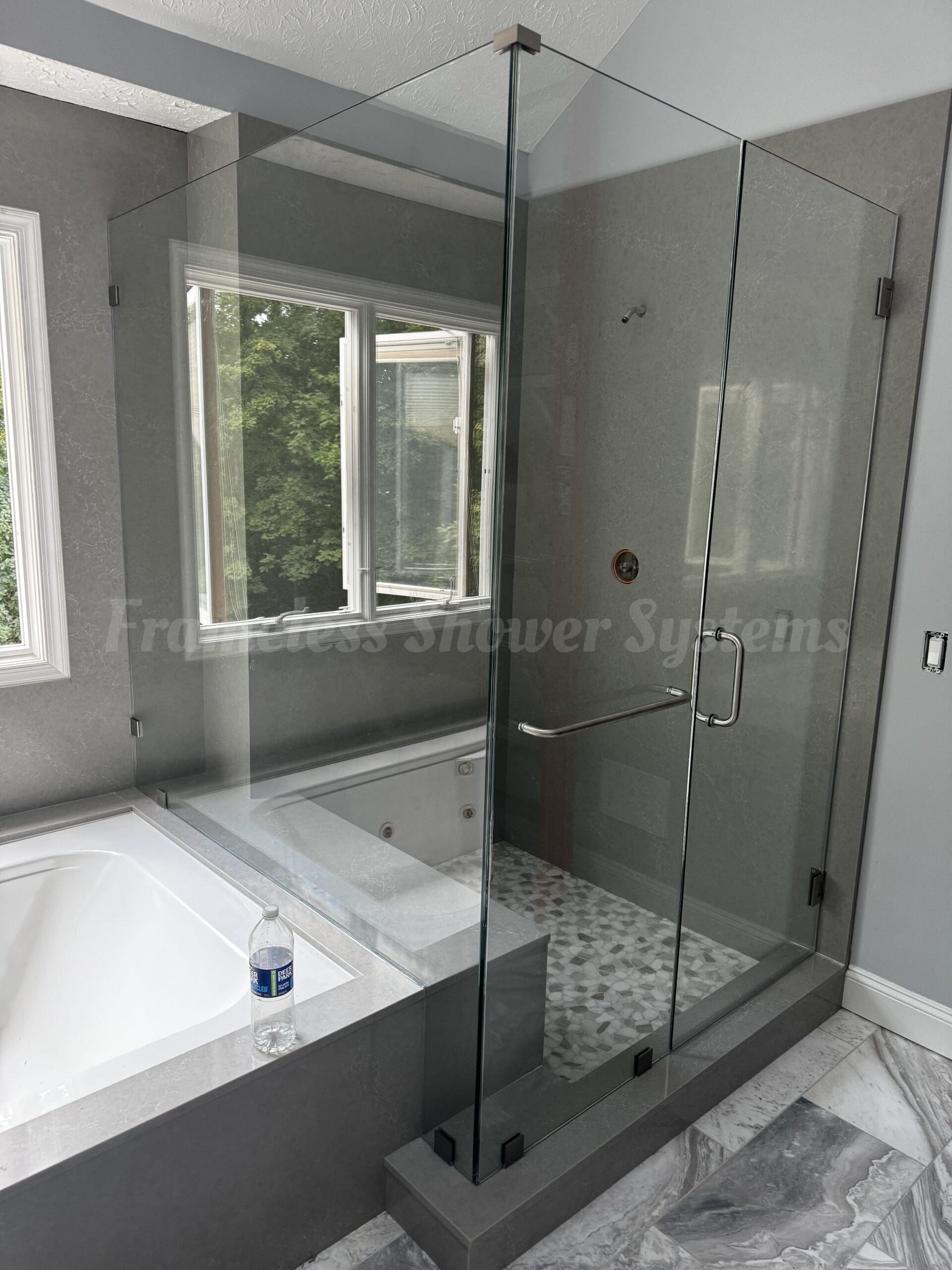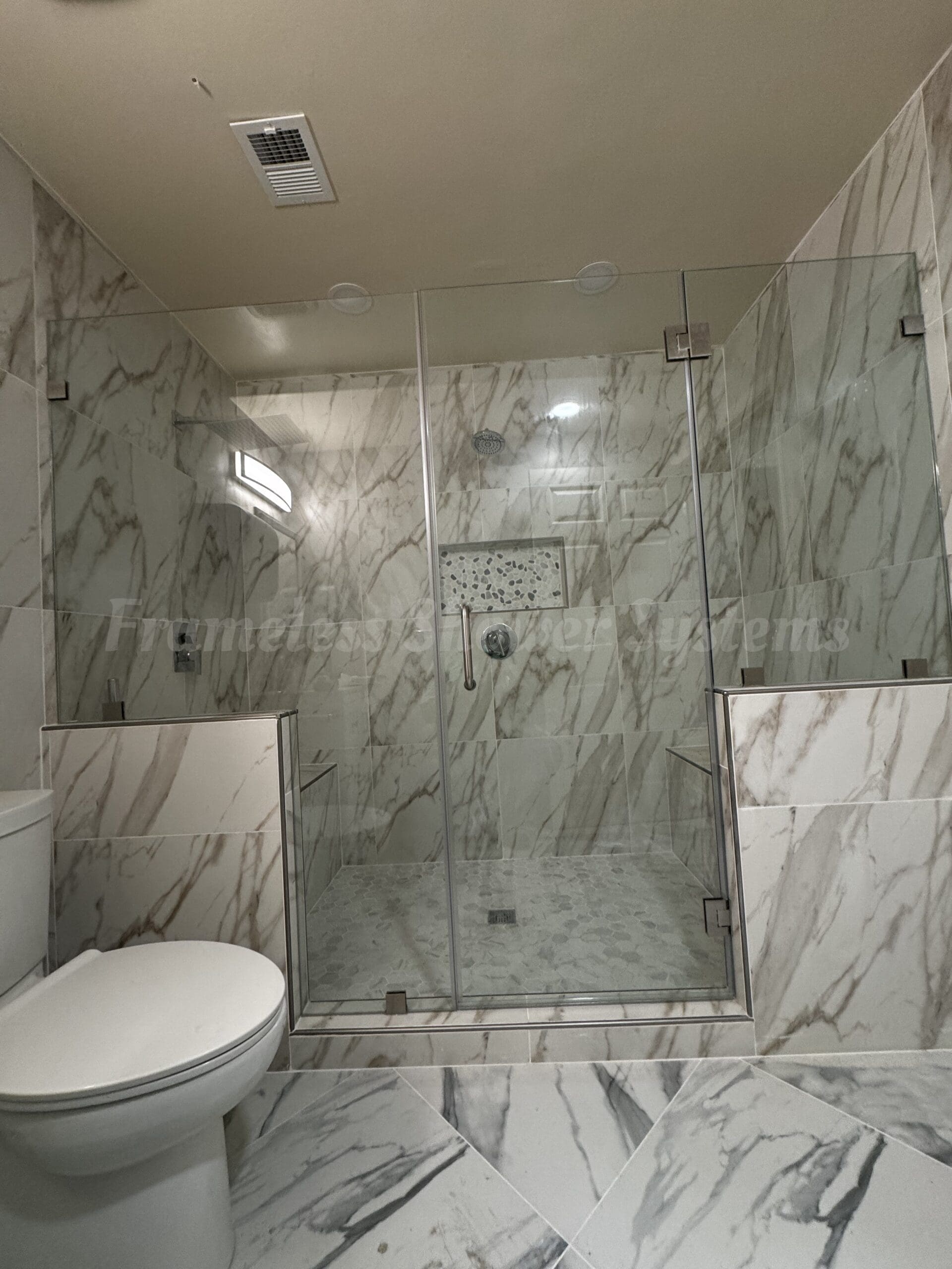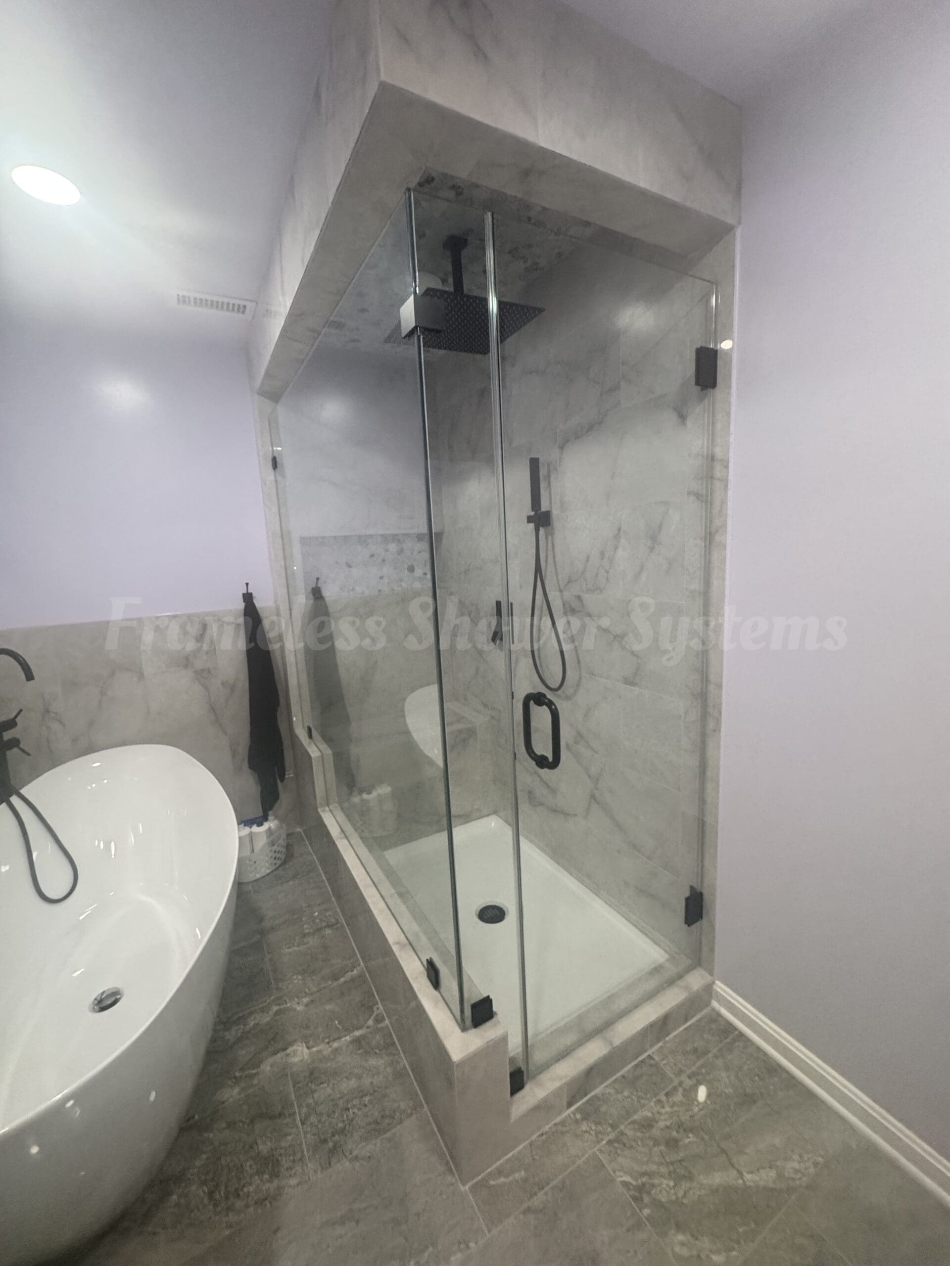 We invite you to explore our extensive photo gallery showcasing a variety of frameless shower images. Each photograph is a testament to our skilled artisanship, illustrating the clarity and beauty of frameless glass designs. The minimalist aesthetic allows for seamless integration into any bathroom style, whether traditional or contemporary.